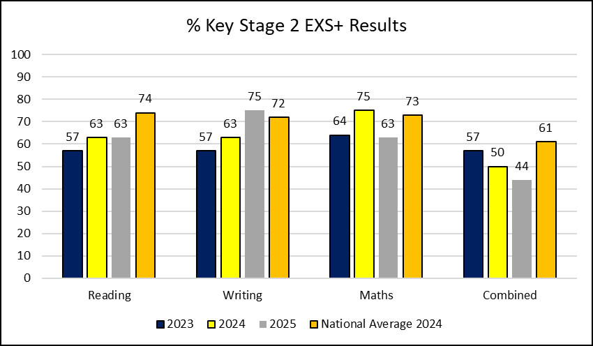 Percentage of Pupils Achieving Expected or Above at the end of Key Stage 2