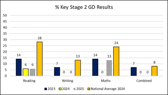 Percentage of Pupils Achieving Greater Depth at the end of Key Stage 2